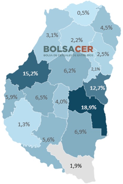 Figura 2. Distribución departamental del consumo de maíz en Entre Ríos.
