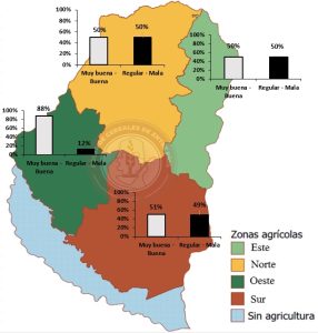 Figura 1: Condición de maíz tardio y de segunda por zona en la provincia de Entre Ríos.