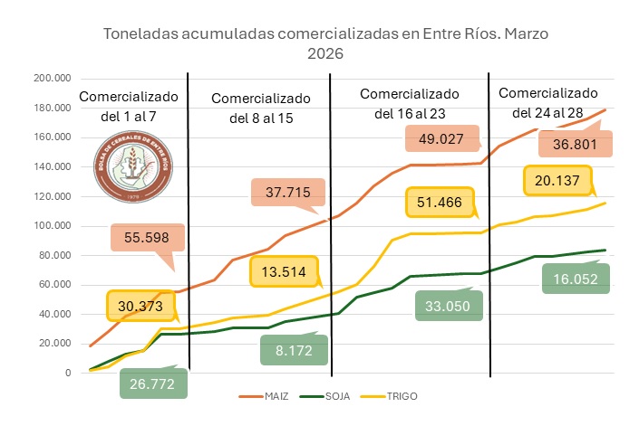 COMERCIALIZACIÓN DE LOS PRINCIPALES CULTIVOS EN ENTRE RÍOS EN MARZO 2026